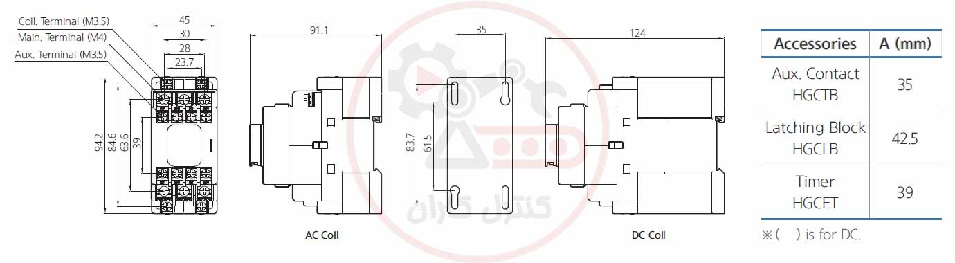 ابعاد کنتاکتور HGC18