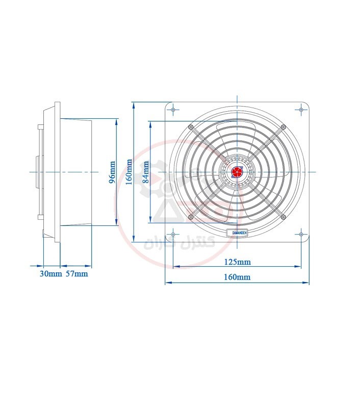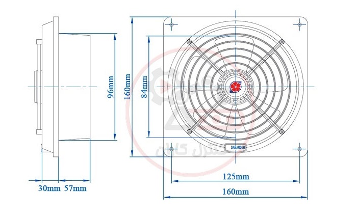 ابعاد این محصول 160x160x89 میلیمتر و قطر لوله 96 میلیمتر میباشد.