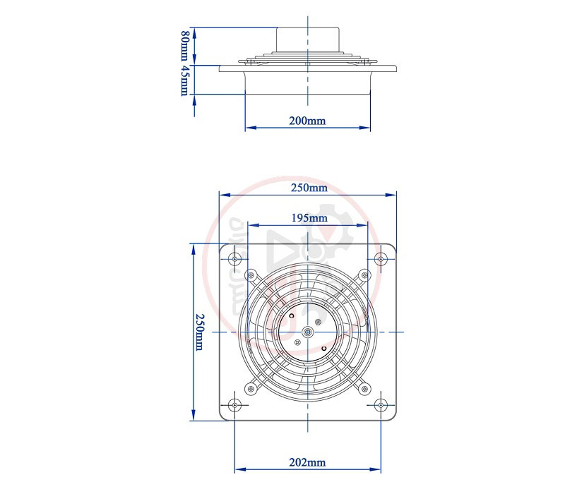 این هواکش با دبی 720m3/h دارای ناحیه تخلیه دایره ای شکلی به قطر 200mm و برای نصب روی پنجره ویا تخلیه آزاد استفاده می شود.