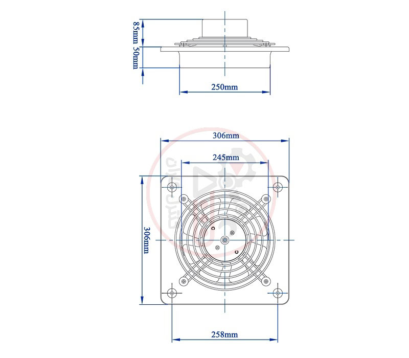 این هواکش با دبی 660m3/h دارای ناحیه تخلیه دایره ای شکلی به قطر 250mm و برای نصب روی پنجره ویا تخلیه آزاد استفاده می شود.